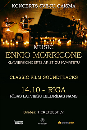 Koncerts sveču gaismā: Ennio Morricone mūzika klavierēm un stīgu kvartetam | RīgaLäti, Rīga, Rīgas Latviešu biedrības nams