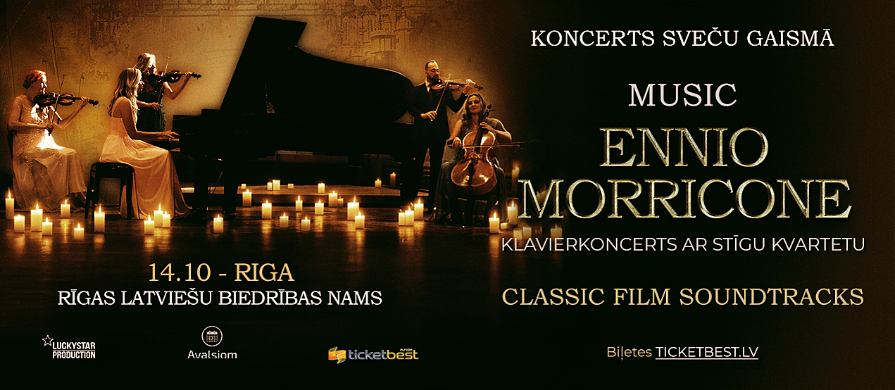 Koncerts sveču gaismā: Ennio Morricone mūzika klavierēm un stīgu kvartetam | Rīga