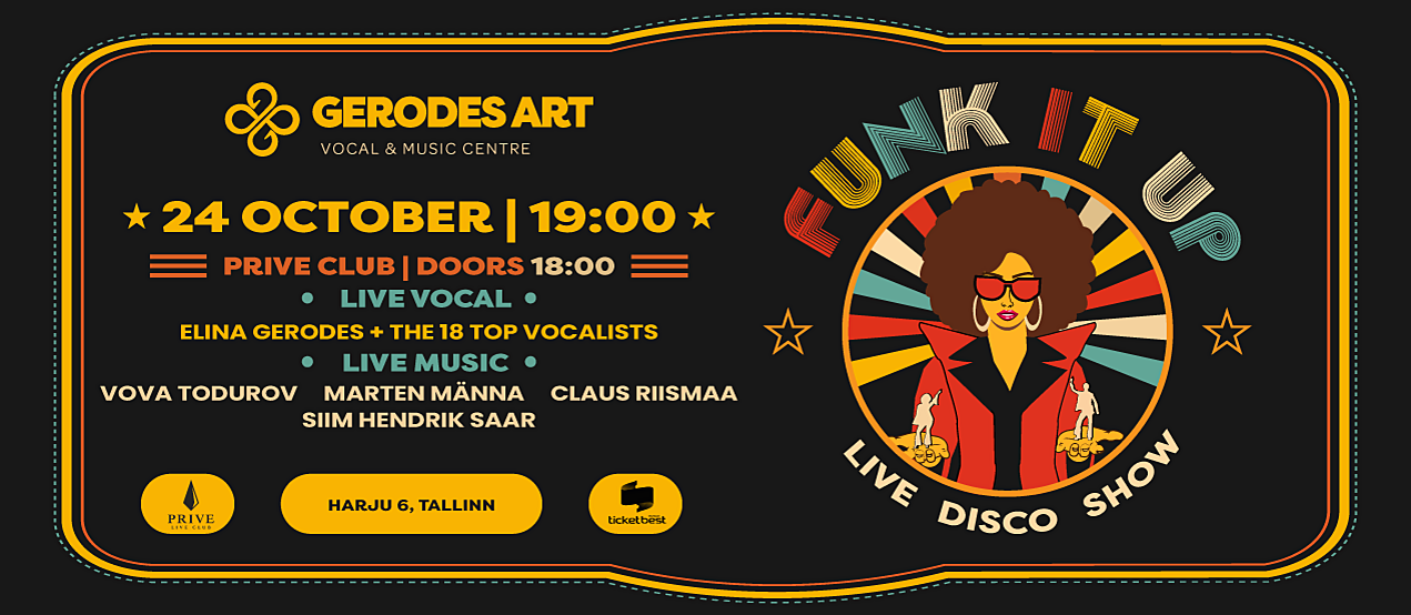 24 октября в Таллинском клубе Privé состоится ярчайшее событие осени: музыкальное шоу в лучших традициях золотой эпохи фанка и диско! Подарите себе единственный и неповторимый вечер.