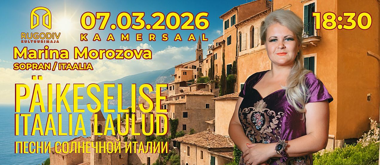 7. märtsil 2026 kell 18.00 toimub Kultuurimajas Rugodiv kontsert "Päikeselise Itaalia laulud".