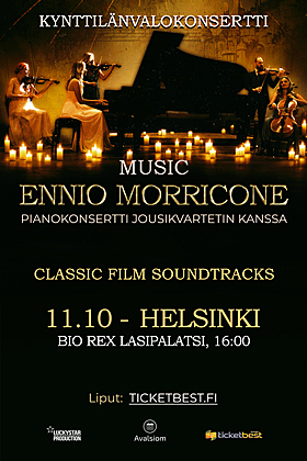 Kynttilänvalokonsertti: Ennio Morricone musiikkia pianolle ja jousikvartetille | HelsinkiSoome, Helsingi, Bio Rex, Lasipalatsi
