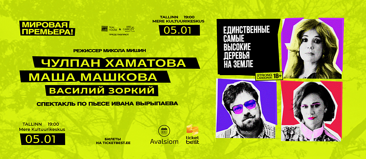 «Единственные самые высокие деревья на Земле» — первый опыт сотрудничества Чулпан Хаматовой, Марии Машковой и Василия Зоркого с одним из наиболее признанных драматургов Европы, Иваном Вырыпаевым, чьи пьесы переведены более чем на 30 языков и идут на сценах десятков театров по всему миру.