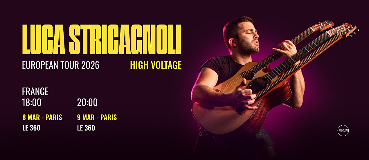 Le guitariste italien de fingerstyle Luca Stricagnoli présente sa nouvelle tournée « High Voltage » en Europe en 2026.